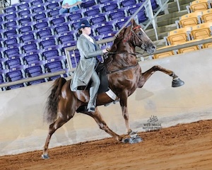 We announce the passing of Major’s Magic Horizon on October 1st, 2025 after a short illness. Sired by Gen’s Major General and out of an Impressive Sun Rise mare, he was born on April 11th, 1998 and affectionately known as Roger. Bred by Linda Patterson of Watertown, TN, Roger was shown extensively throughout his life in both amateur, open, and juvenile ranks. In 2009, after seeing Drew Graves show him in a stake class, he was purchased by Rod & Teresa Slagle to be teamed in the Youth Ponies division with their daughter Cassi Slagle. This proved to be a very successful and special pairing in the years to come. In 2009, Roger was the very first horse Cassi showed at the Celebration. For 12 years, Roger and Cassi entered the show ring together countless times and culminated their show career together in the 2021 O/A Classic Horse class at that year’s Celebration. He was 23 years old and as feisty as ever!